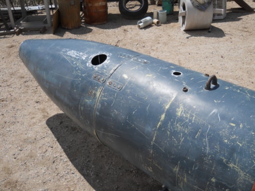 This thing is huge - 17.5’ long, 29” diameter – 450 gal - great shape – no major dings or dents – just wear and tear like you would expect of a tank this old and of this size - can provide additional photos. Tank breaks down into three main sections and have interesting sealing ring / feature between sections – both of which are in excellent shape. Requires large o-rings if you truly want it to seal – I can provide a couple original ones but they are shot and would only be good as Chinese blueprint. Sections are approx: nose 58” long, main body 82.5” long, and tail 65”. There are two main ports and the contoured access panels are included – ports / access holes are approx 4 ¾ in diameter and one is used for maintenance and the other takes a fuel cap. Identiplate says 188lbs but it’s closer to 200. Buyer is responsible for any and all shipping fees and arrangements, although I can be available to assist with loading or pickup. Hot rod salt lakes flats race racing bomber mini sub aviation aircraft